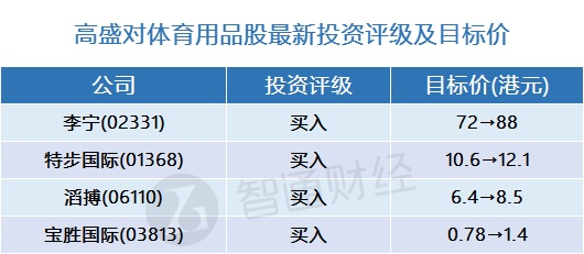 报告中称,考虑到内地体育服装销售2022年第四季,尤其去年12月更为低迷,将相关股份的2022年盈测下调6%至68%,并微调2023-24年的盈测以反映对复苏上的更大信心。该行相信,投资者的情绪将有改善,并更关注特步国际(01368)、波司登(03998)、滔搏(06110)和宝胜国际(03813)正常化下的增长路径,将它们的目标价上调15%至79%。