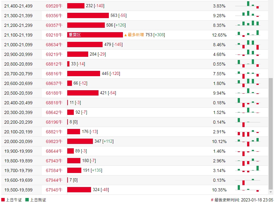 牛证街货重货区和最多新增都在21100-21199区间,该区间最新牛证数量为753张,较上一交易日增加308张。