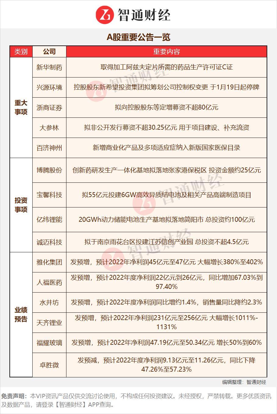 【A股重要公告一览】