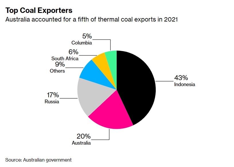 主要煤炭出口国——澳大利亚占2021年动力煤出口总量的五分之一