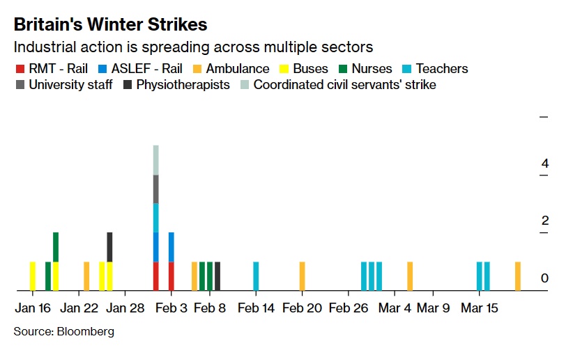 英国冬季罢工浪潮——劳工罢工行动正在多个领域蔓延