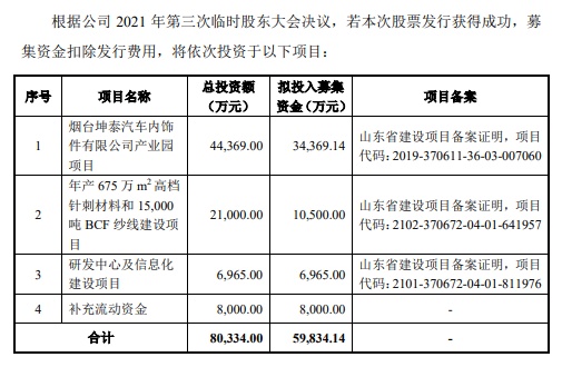 据招股书,坤泰股份的主营业务为汽车内饰件材料及产品的研发、生产和销售,主要产品包括汽车地毯和汽车脚垫两大类,产品应用市场主要面向整车配套市场(即前装市场)。在十余年的发展历程中,伴随汽车产业转型升级和国产化等发展机遇,公司通过产品开发、工艺改进和市场积累,不断丰富产品类别、延伸产业链条、拓展下游客户群体,逐步形成了集“BCF 纱线—汽车地毯—汽车脚垫”为一体的多品种、多层次的业务格局。