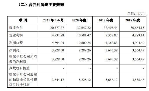 财务方面,2018年、2019年、2020年及截至2021年1-6月,坤泰股份实现营收分别约为3.07亿元、3.24亿元、3.77亿元、2.04亿元;同一时期,该公司实现净利润分别约为3564.47万元、5645.38万元、8289.26万元、3828.5万元。