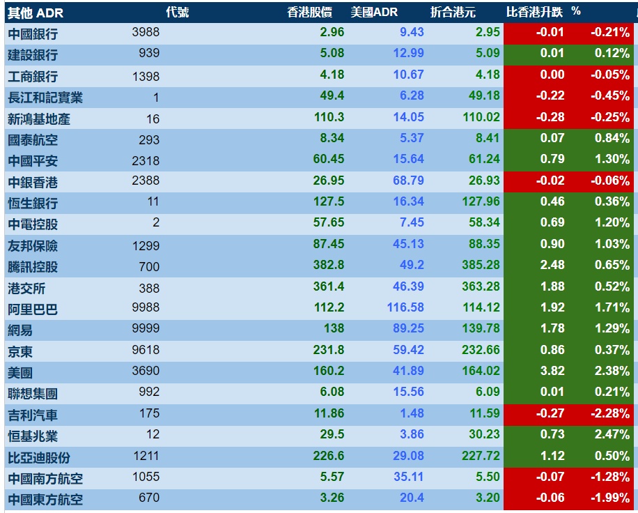 智通财经APP获悉,周四美股三大指数集体收跌,港股ADR指数上涨,按比例计算,收报21813点,较香港收市涨162.56点或0.75%。