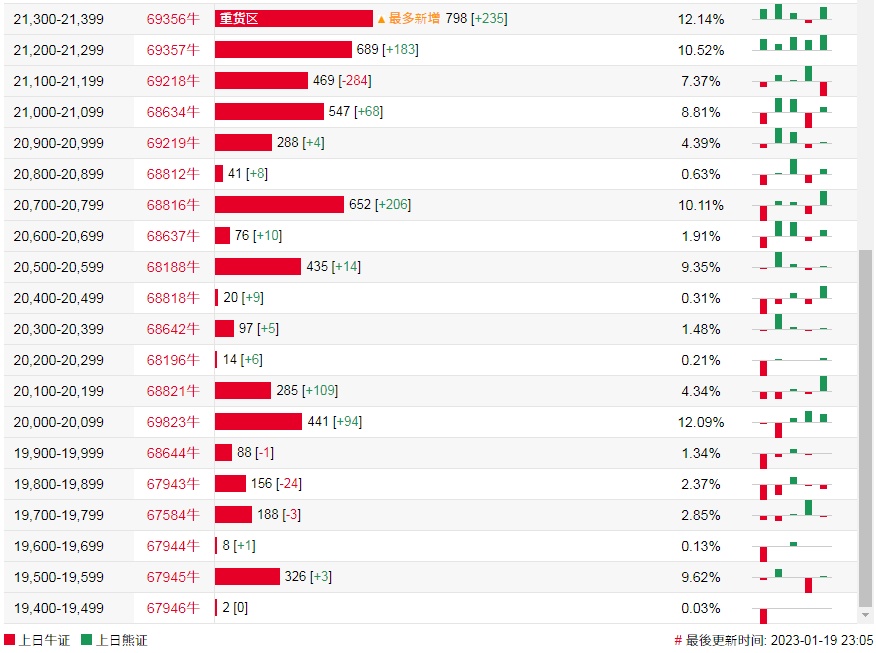 牛证街货重货区和最多新增都在21300-21399区间,该区间最新牛证数量为798张,较上一交易日增加235张。