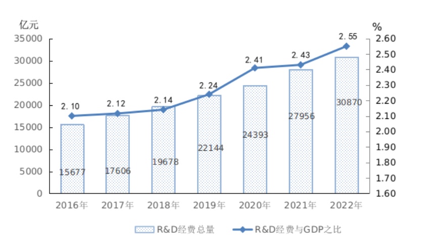 2022年我国R&D经费突破3万亿元 与GDP之比达2.55%