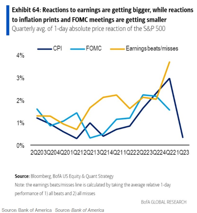 美银的萨维塔·萨布拉马尼安(Savita Subramanian)表示,股市对通胀数据和美联储会议的反响正在减弱,受上市公司业绩的影响却越来越大。
