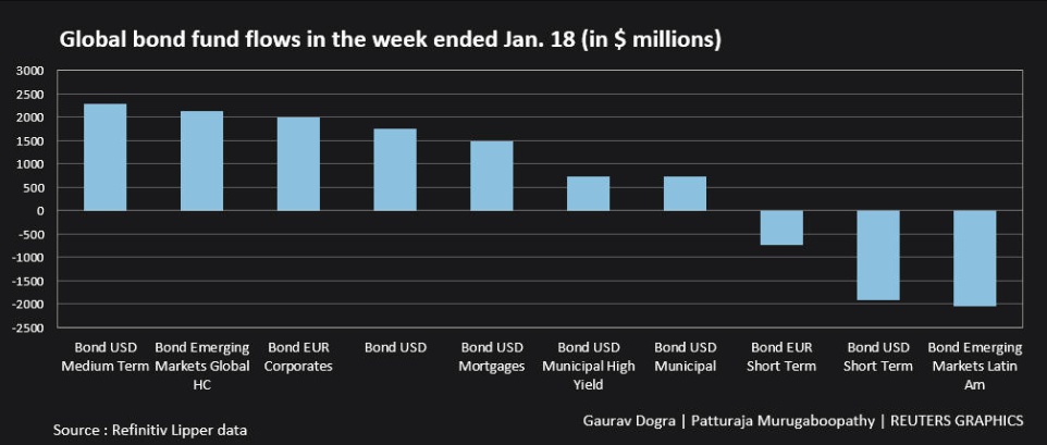 与此同时,全球债券基金也连续第三周出现资金流入,总计吸引了132.3亿美元的资金。