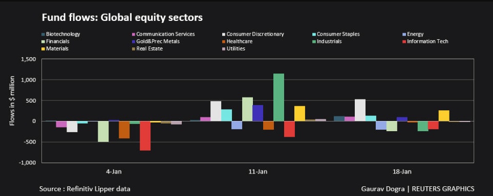 然而,大部分资金流入了欧洲股票基金,因为投资者正在追逐去年遭受更严重打击、估值更低的欧洲股市。