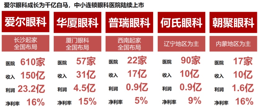 可见,从盈利角度来看,朝聚眼科的盈利能力妥妥的强于普瑞眼科以及何氏眼科,尽管公司的医院家数最少,但若以此发展下去,朝聚眼科将妥妥的是行业小黑马。