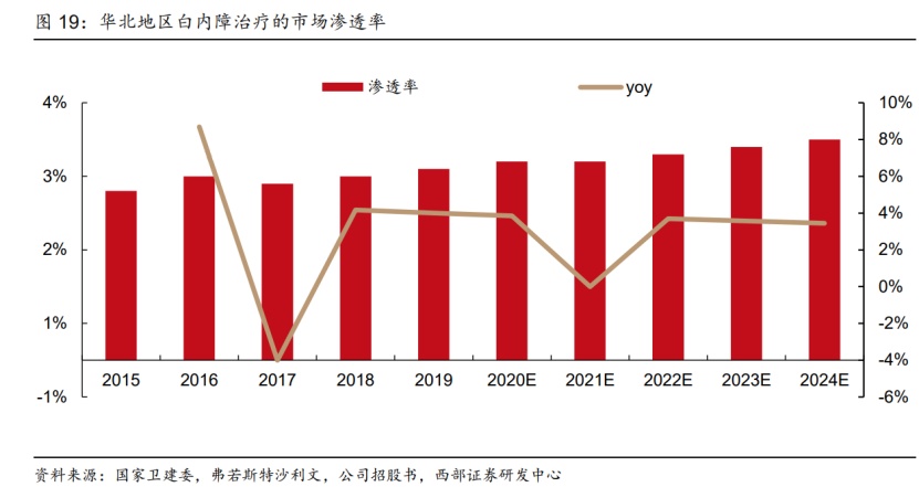 根据弗若斯特沙利文数据,预计2024年渗透率将达到3.0%。2020-2024年华北地区白内障治疗的市场渗透率年复合增长率为2.67%。