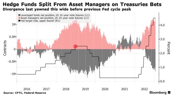 上一次对冲基金和资产管理公司对基准美国国债的未来产生如此分歧,是在美联储的货币政策紧缩周期即将在2018年底见顶的时候。