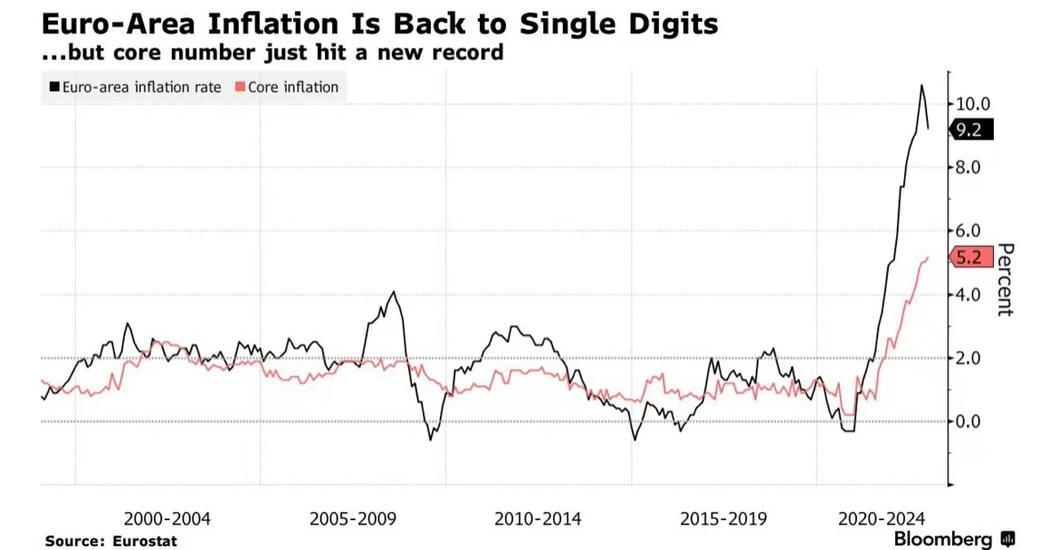 这些言论引发了激烈的辩论,即随着通胀从历史高位回落,放缓加息步伐是否合适。拉加德上周表示,坚持既定路线是她的“政策咒语”,因为官员们的注意力越来越多地从总体通胀转向创纪录的核心通胀。拉加德周一表示:“虽然能源通胀最近有所下降,但潜在通胀继续上升。”