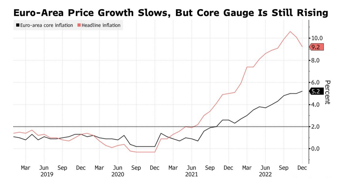 最近几周,欧元区的经济前景有所好转,部分原因是温暖的冬季天气和充足的储存设施导致天然气价格下降。尽管如此,Simkus警告说,去年乌克兰战争导致的一些影响尚未到来。他说:“汽油价格的上涨可能还没有完全反映在消费品上。尽管最近价格有所下降,但目前的市场价格比以前高得多。”