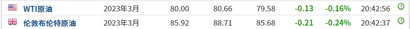 3. 截至发稿,WTI原油跌0.16%,报80.00美元/桶。布伦特原油跌0.24%,报85.92美元/桶。
