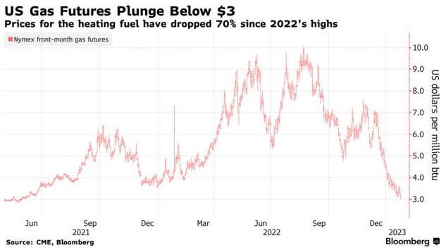 智通财经APP获悉,美国天然气期货价格近19个月来首次跌破3美元,主要由于暖冬温和的气温抑制需求,引发了该国市场对该大宗商品近期最严重的抛售行为。由于多种因素消化抵消了美国市场对天然气供应商无法满足冬季供应需求的担忧,导致天然气价格在去年8月触及近14年高点(10.03美元)后下跌。