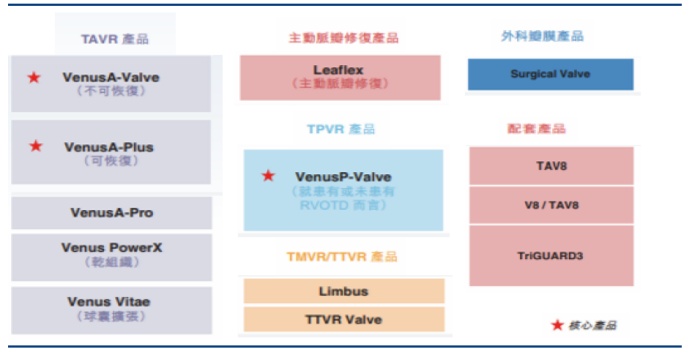 TAVR一代产品:公司的一代产品 VenusA-Valve 于 2017 年 4 月 25 日获得 NMPA 批准上市,成为首款经过 NMPA 批准的 TAVR 产品及首款在中国商业化的 TAVR 产品。