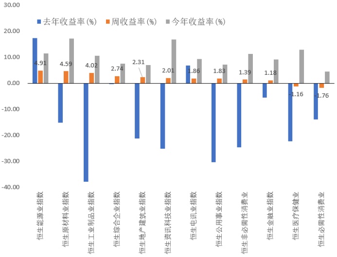 图表6:港股市场能源、原材料等行业在本周反弹力度强