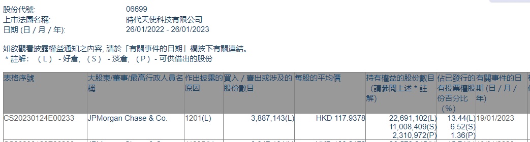 智通财经APP获悉,香港联交所最新资料显示,1月19日,小摩减持时代天使(06699)388.7143万股,每股作价117.9378港元,总金额约为4.58亿港元。减持后最新持股数目约为2269.11万股,最新持股比例为13.44%。