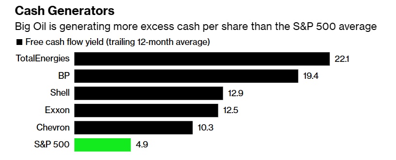 现金生成器——大型油气公司每股产生的超额现金超过标普500指数的平均水平