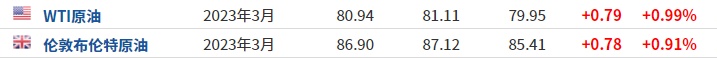 3. 截至发稿,WTI原油涨0.99%,报80.94美元/桶。布伦特原油涨0.91%,报86.90美元/桶。