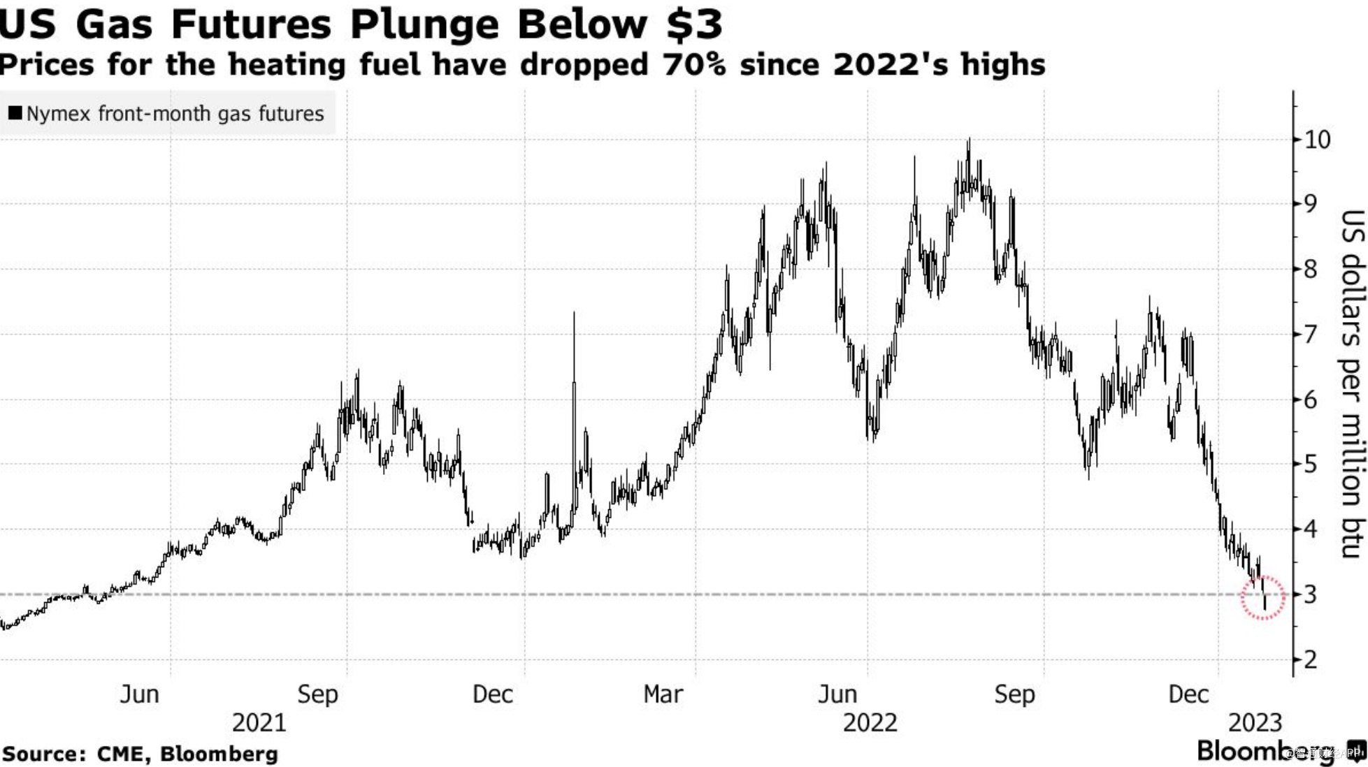 对供应商无法满足冬季需求的担忧已被一系列因素消除,导致天然气价格在去年8月份触及10.03美元的14年高点后暴跌逾70%。下降的关键原因包括:美国和欧洲设法在冬季到来之前补充了缓冲库存,而北半球相对温和的天气抑制了取暖需求。