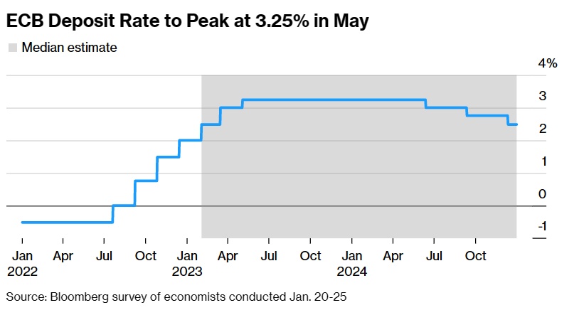 欧洲央行设定的存款利率可能在5月达到3.25%的峰值