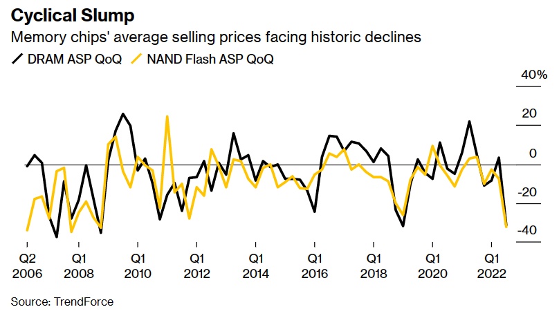 周期性衰退——存储芯片的平均销售价格面临历史性下跌