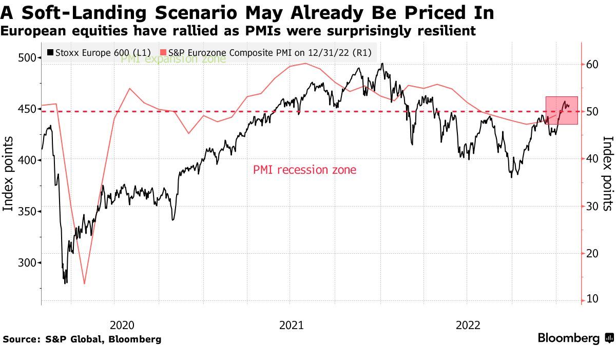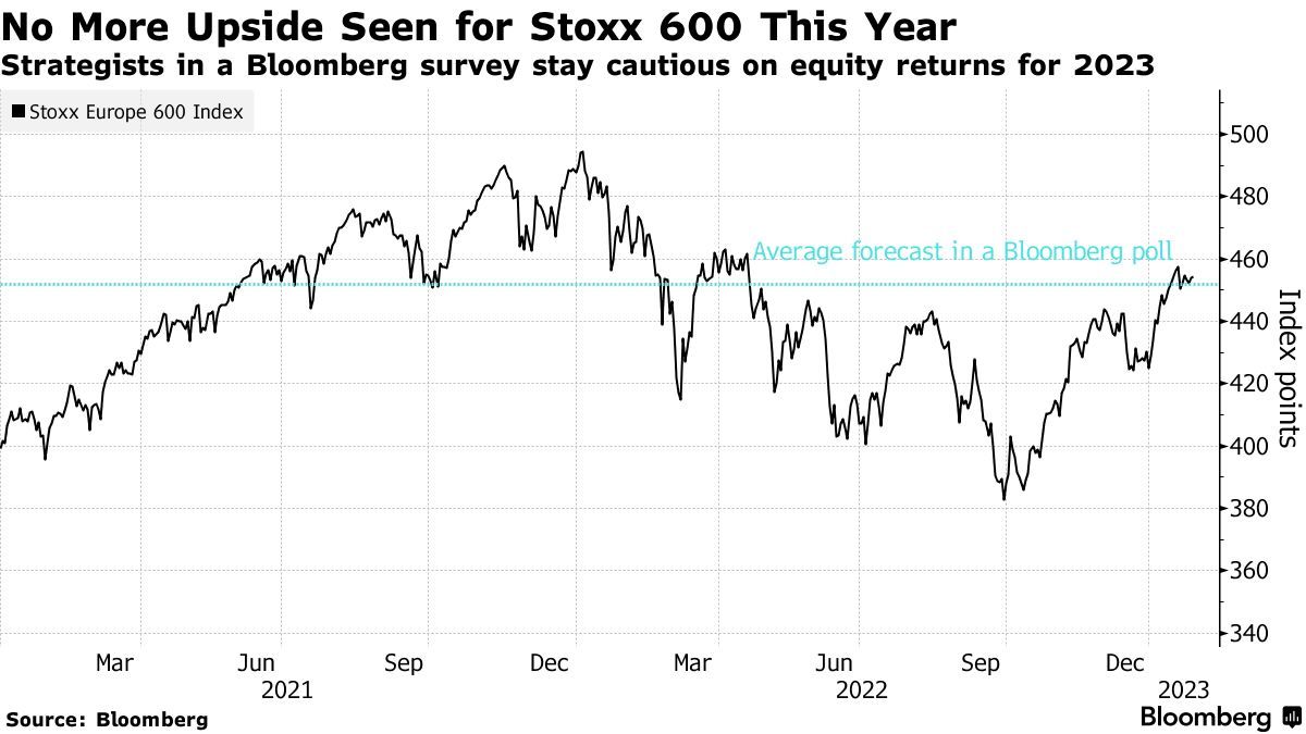 但顶级资产管理公司仍持谨慎态度。有交易数据显示,迄今为止的涨势是由空头补仓所推动。贝莱德投资研究所的策略师们表示,欧股乐观情绪来得太早了,而高盛集团和美国银行策略师则警告称,2023年涨势的最佳时期可能已经结束。