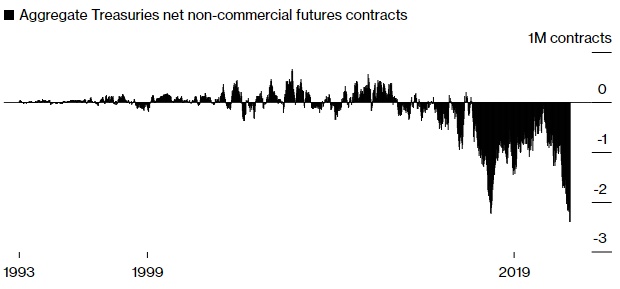 智通财经APP获悉,对冲基金押注今年美国国债的良好开局难以持久,悄然建立了有史以来最大规模的债券期货空头押注。根据商品期货交易委员会(Commodity Futures Trading Commission)截至1月24日的最新数据显示,所有到期美国国债的非商业性净空头头寸总计已达到240万份合约。这些头寸涵盖了多种市场投资策略(从直接押注到收益率曲线押注,再到相对交易到对冲),但总体方向与美联储加息顶点即将到来、美国经济衰退将迫使投资者重返债券市场的说法相冲突。