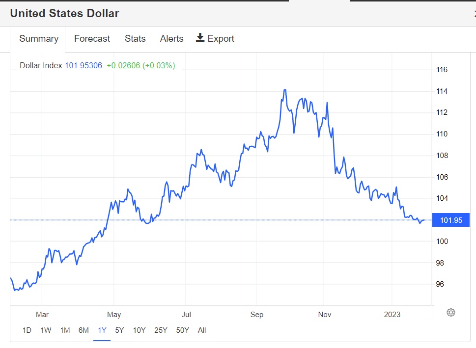 然而,该指数已经连续四个月下跌,主要因市场预期美联储即将结束加息周期,利率峰值不会上升到之前美联储官员预计的超过5%水平,因此美元受到下行压力。在北京时间本周四,美联储、英国央行和欧洲央行将接连召开货币政策会议。