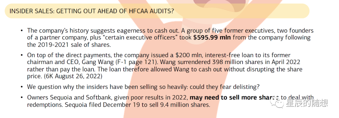 报告中提出公司内部人士自2019年以来卖了大量持有的股份,也许是对公司前景不看好。