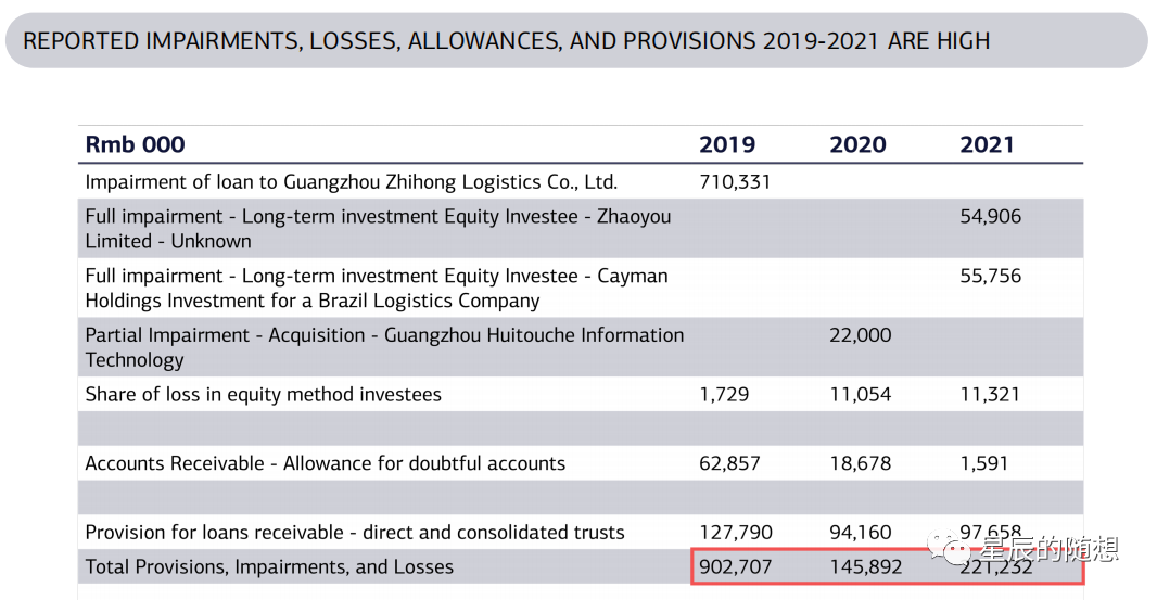 实际上最近几年减值计提比较大的一笔就是2019年公司对给予其收购的鑫志鸿物流公司的贷款7.1亿减值损失,2018年公司拟向广东鑫志鸿物流公司进行了股权投资。投资过程中的一揽子交易安排包括公司提供部分借款支持运营。后来标的公司经营情况恶化,公司迅速实施了重组方案,追讨了部分欠款。出于谨慎性考虑计提了减值。全部未归还资金均已计提,后续不存在进一步计提风险。由于收购的公司在报表中体现了减值损失,说明收购的公司报表并没有并入满帮,而是作为权益法确认,那相应的收购的公司的收入也不会体现在满帮合并报表内,从而也无法增加收入。