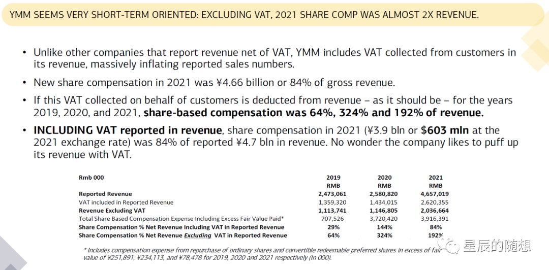 回到这次做空满帮事件,乍一看这PPT格式的报告54页洋洋洒洒,堆砌了一大堆对于满帮前员工的采访纪要和各种财务和运营数据,报告正文总结第一句就语不惊人死不休,质疑满帮的交易量和GTV造假,被夸大了6-10倍。