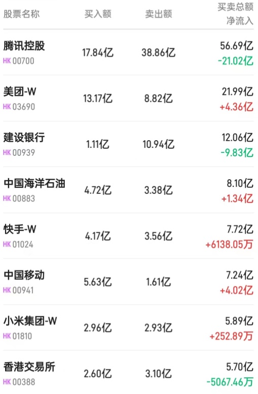 此外,建设银行(00939)、港交所(00388)、信达生物(01801)分别遭净卖出9.83亿、4.36亿、6847万港元。