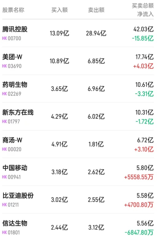 腾讯(00700)遭净卖出36.87亿港元。消息面上,中粮期货发布报告表示,需要警惕美元指数超预期上涨风险。该机构还表示,当前港股市场内外利好共振下逐步走热,在预期和超跌的修复构成主因的前提下,关注实际经济动能修复与预期脱轨可能的扰动。