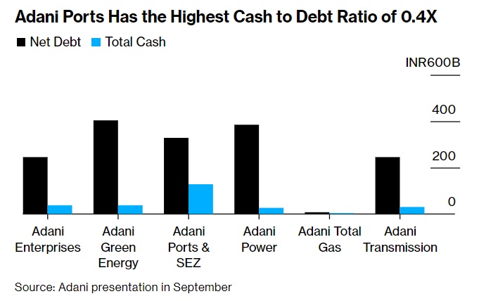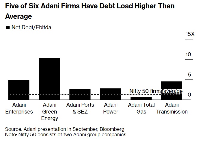 不过,市场对阿达尼债务负担的长期管理仍存在担忧。在9月的演示中,阿达尼列出了其六家公司的杠杆率,其中五家公司的比率高于印度Nifty 50指数成分股的平均水平。