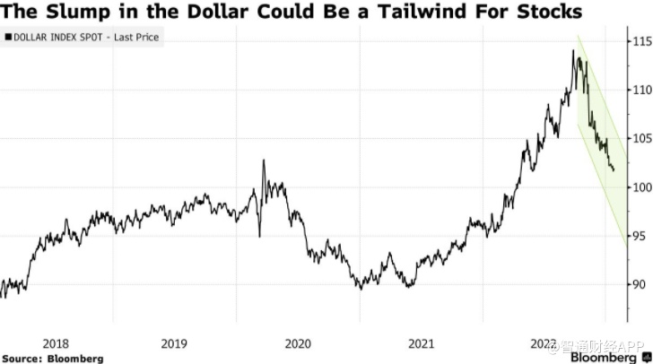 受美联储为遏制通胀而加息的影响,美元指数去年创下自2015年以来的最大涨幅。美元走软反映出人们对美联储转向鸽派的乐观预期,10年期美国国债收益率(科技股估值背后的一个关键因素)也从近期的高点回落。