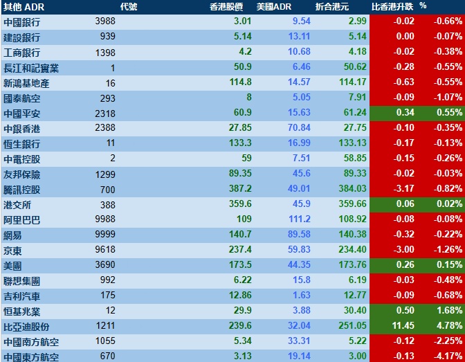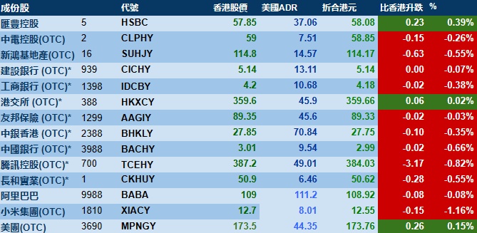 智通财经APP获悉,周一美股三大指数集体收跌,港股ADR指数下跌,按比例计算,收报22040点,较香港收市跌28.56点或0.13%。