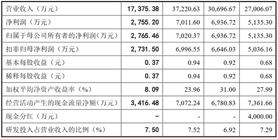 财务方面,于2019年度、2020年度及2021年度,公司实现营业收入分别约为2.70亿元、3.07亿元、3.72亿元。公司净利润分别约为5135.3万元、6936.72万元、7011.6万元人民币。