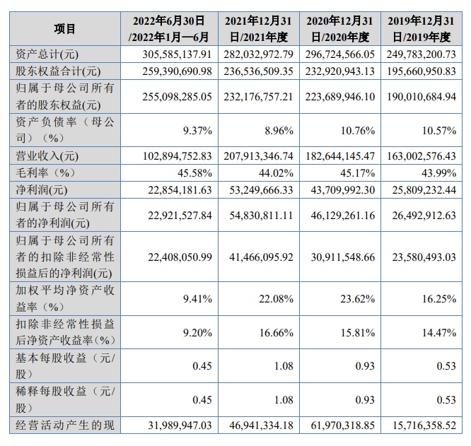 财务方面,2019年、2020年、2021年及2022年上半年,新赣江实现营收分别约为1.63亿元、1.83亿元、2.08亿元、1.03亿元;同一时期,该公司净利润分别约为2580.92万元、4371万元、5324.97万元、2285.42万元。