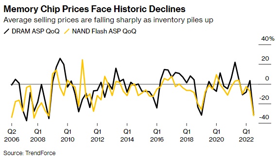 三星一直在艰难应对内存价格的历史性下跌,因为利率和通胀不断飙升,消费者减少了对电子产品的购买。库存堆积如山,迫使价格出现两位数的下滑,加剧了损失。