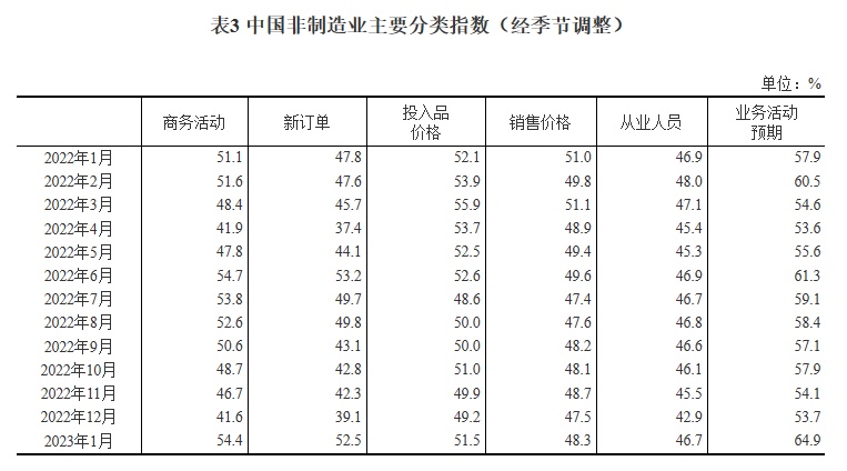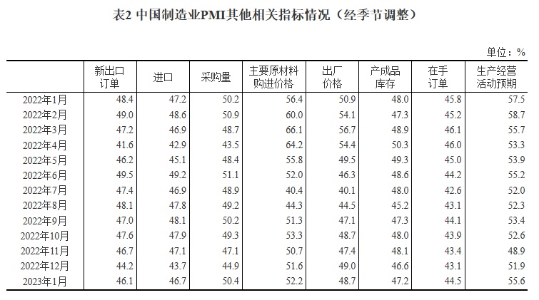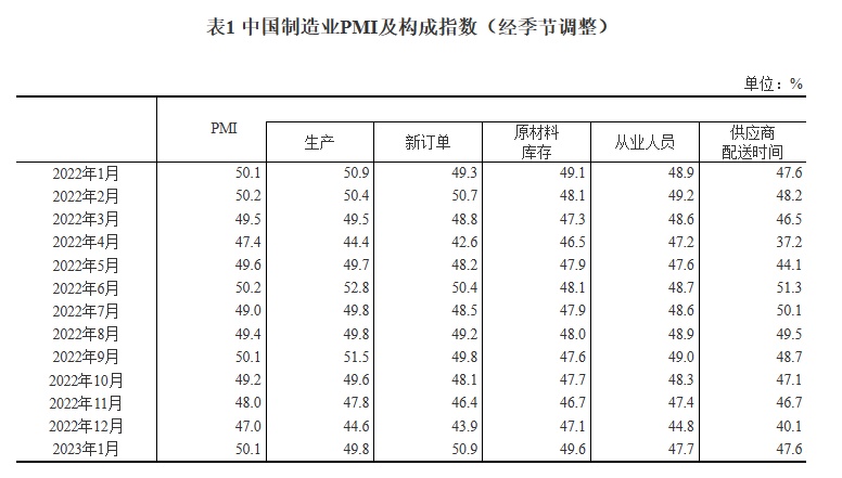 2023年1月中国采购经理指数运行情况