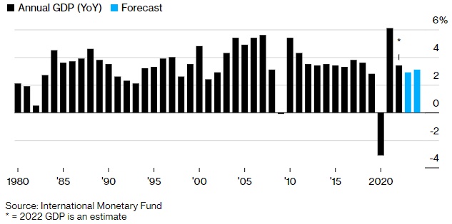 由于国内需求强劲,预计美国经济将增长1.4%,比之前的预测高出0.4个百分点。Gourinchas表示,尽管失业率由3.7%升至5.2%左右,但国际货币基金组织认为美国经济在2023年可以避免衰退。