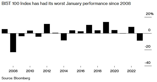 伊斯坦堡100指数在1月的表现为2008年以来最差