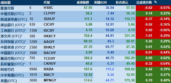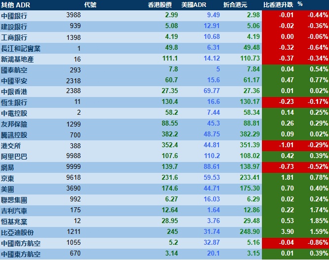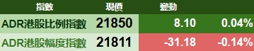 智通财经APP获悉,周二美股三大指数集体收涨,港股ADR指数上涨,按比例计算,收报21850点,较香港收市涨8.10点或0.04%。