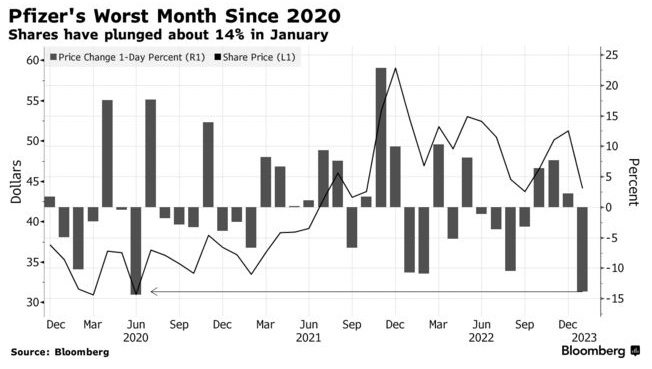 智通财经APP获悉,1月,辉瑞(PFE.US)股价遭遇了自2020年6月以来的最大单月跌幅,因投资者预计该制药公司的新冠产品前景堪忧。