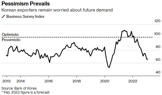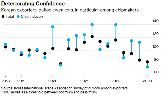 韩国出口是全球贸易的一个重要晴雨表,因为该国生产的芯片、显示器和成品油等关键产品横跨供应链。韩国还是世界上最大的一些半导体和智能手机制造商的总部所在地,经济严重低迷正在损害这些行业,并拖累韩国的经济势头。