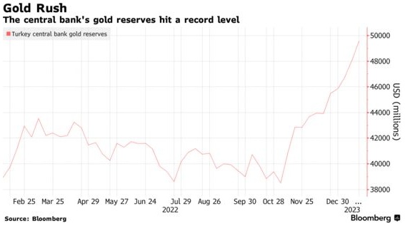 土耳其国家统计局TurkStat周二发布的单独数据显示,2022年12月,土耳其贵金属和宝石进口量同比增长近600%。能源和黄金是土耳其贸易逆差的主要驱动因素,同期土耳其贸易逆差扩大了42%。