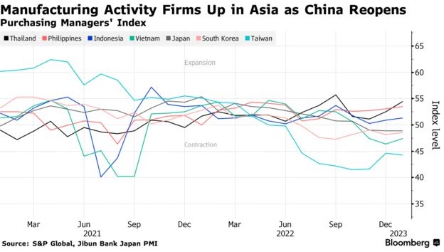 (随着中国市场重新开放,亚洲地区制造业开始复苏)
